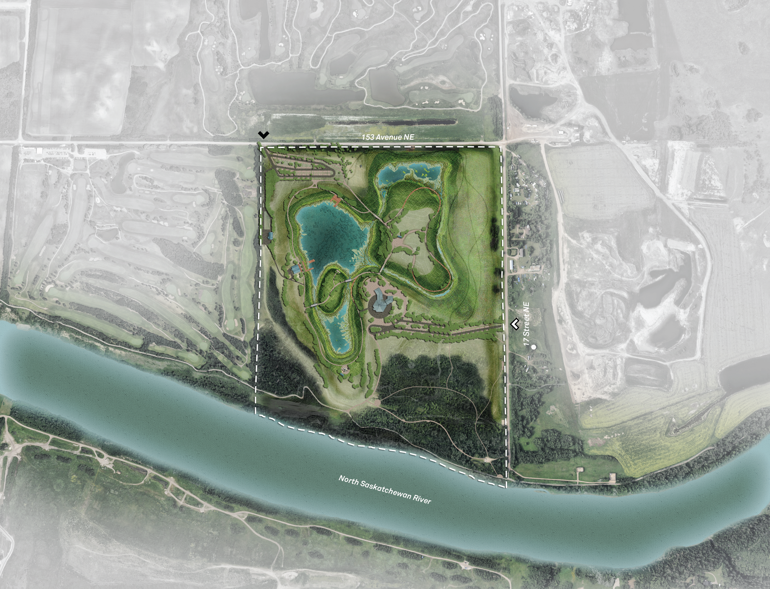 The park, intended to be a major destination in northeast Edmonton, features unique amenities such as an event centre capable of hosting up to 1000 people, a programmable lake, picturesque barn bridges, and a playground. Given the park’s connection to the River Valley, there is a significant wildlife presence, offering breeding and foraging opportunities. The project aims to develop recreational programming, address the reuse of camp sites and associated buildings, identify areas for naturalization and restoration, and enhance security and access.